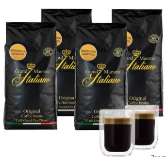 Bei Kaffeevorteil gibt es 4 kg Kaffeebohnen von Grand Maestro Italiano Original edizione limitata + 2 exklusive doppelwandige Gläser GRATIS dazu! Ihr zahlt nur 49,99 € inklusive Versand statt 97,75 €.